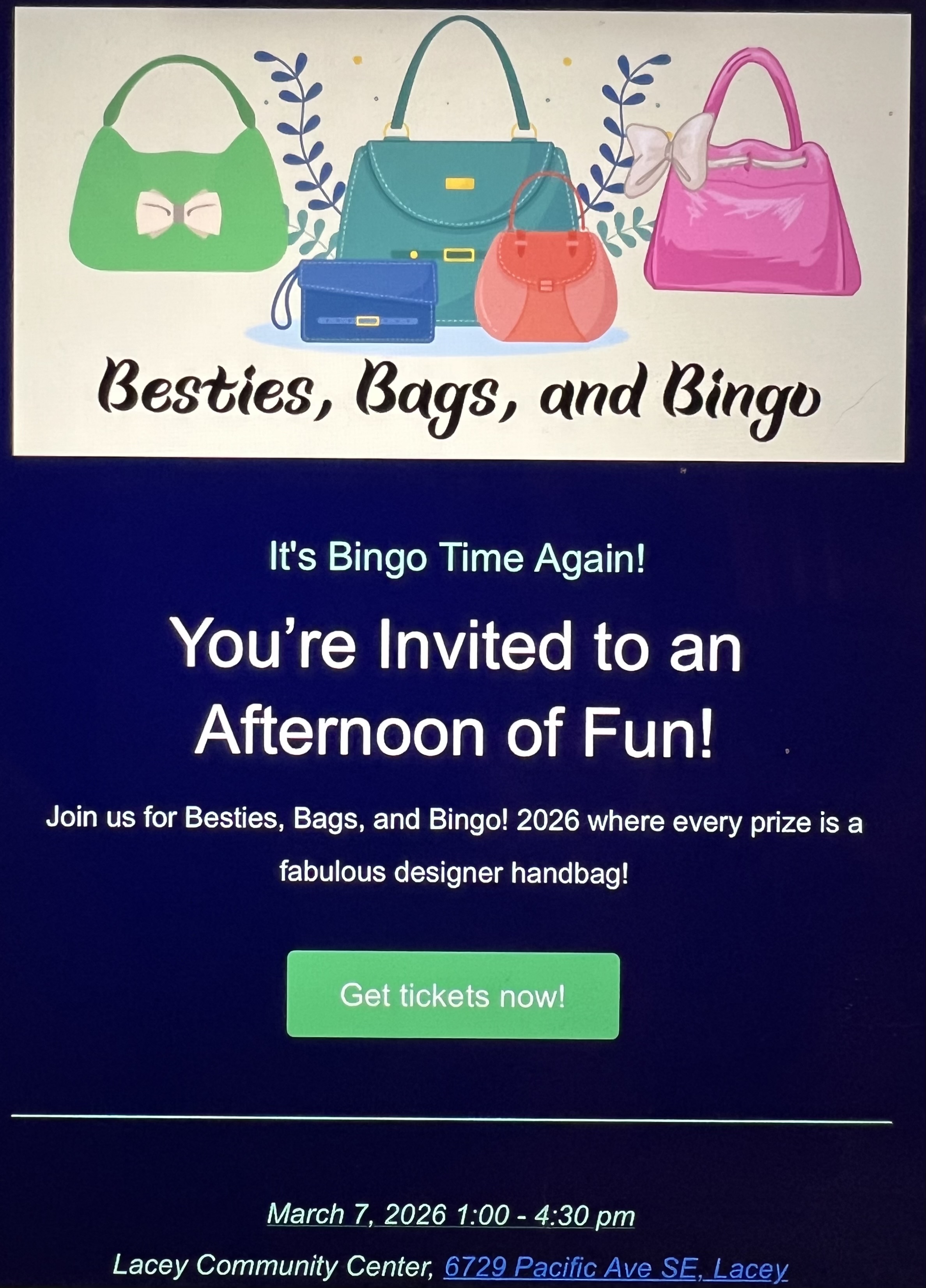 Besties, Bags, & Bingo 3/7/2026 Share this: Share on X (Opens in new window) X Share on Facebook (Opens in new window) Facebook Like Loading...
