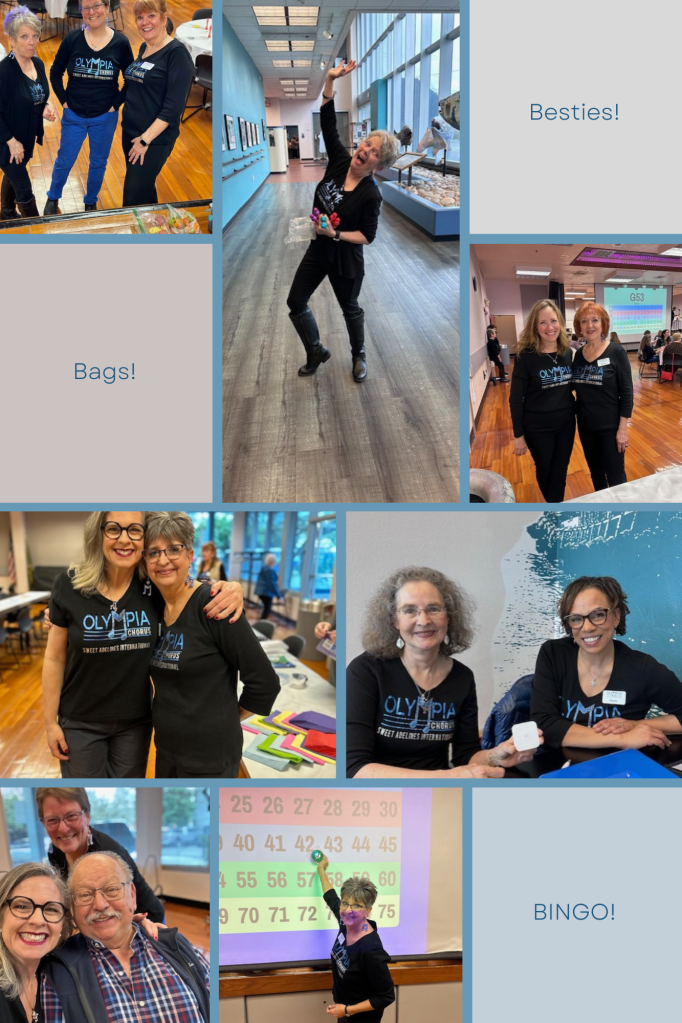 Performing at Olympia Lakefair, 2022Hosting Besties, bags, and BINGO, 2024Olympia Chorus- Day One of Retreat 2024Performing at Real Men Wear Pink, 2018Performing the National Anthem at a Seattle Mariners game, 2016Annual Show, 2016North by Northwest Region 13 Competition, 20222023 Holiday performance at the Olympia HotelJanuary 2024-Rehearsal led by our guest director, the AMAZING Drew Osterhout of the Pride of Portland Chorus